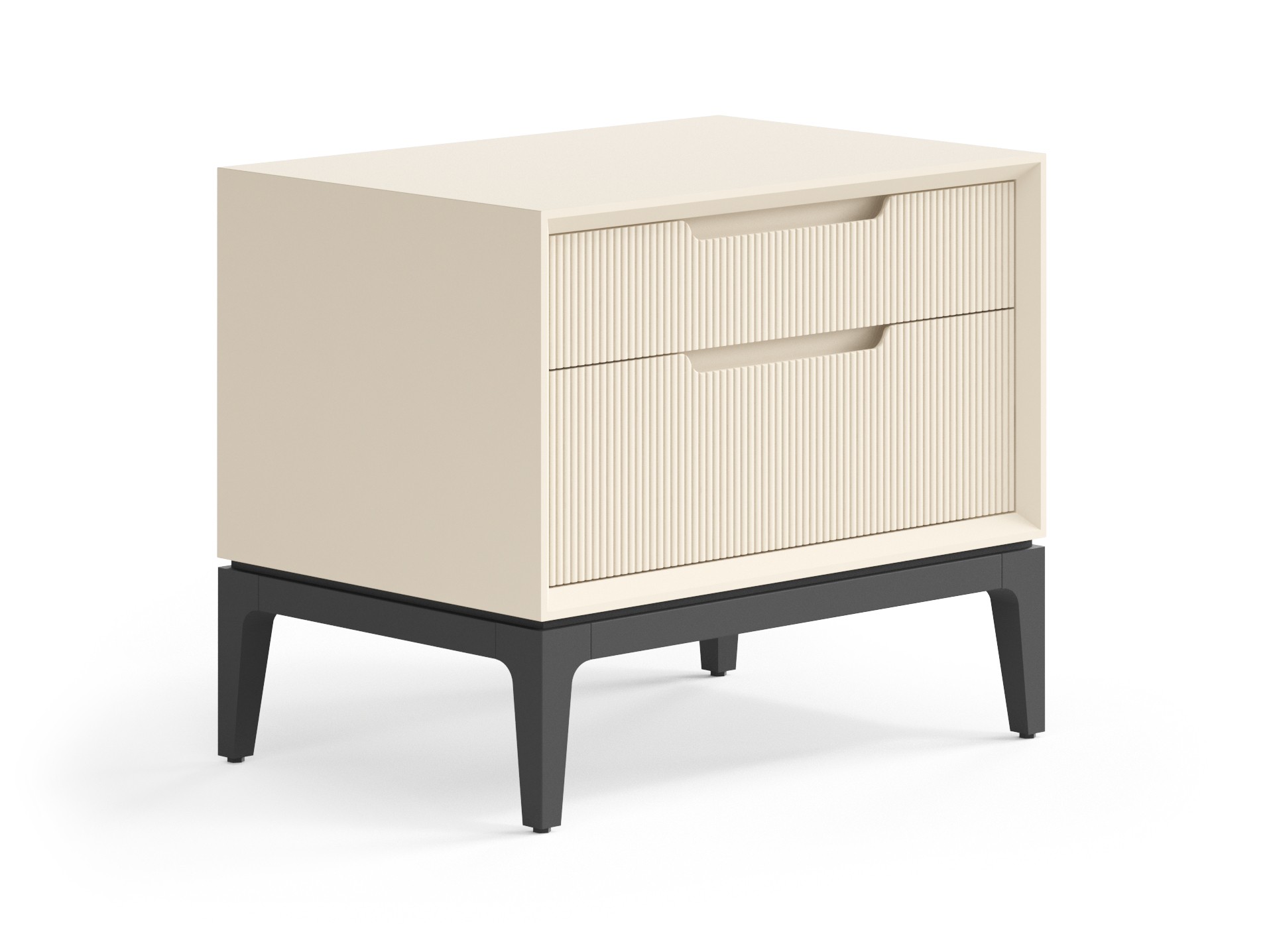 Стильная тумба гармонично впишется в интерьер спальни. Ножки могут быть в цвет корпуса или же в чёрном матовом покрытии эмалью — любое решение будет выглядеть элегантно и современно. Рельефная фрезеровка на фасаде приятна на вид и на ощупь, придаёт изделию индивидуальность и характер. Фрезерованная ручка выполнена специально для удобного захвата, а механизм продуман до мелочей — тихий и плавный, он делает ежедневное пользование изделием максимально комфортным.
